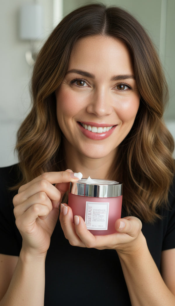 hidrata y reafirma la piel desde la primera aplicación. Enriquecida con extracto de champagne y un aroma suave y elegante, deja la piel visiblemente más firme, suave y con una sensación de frescura renovada.